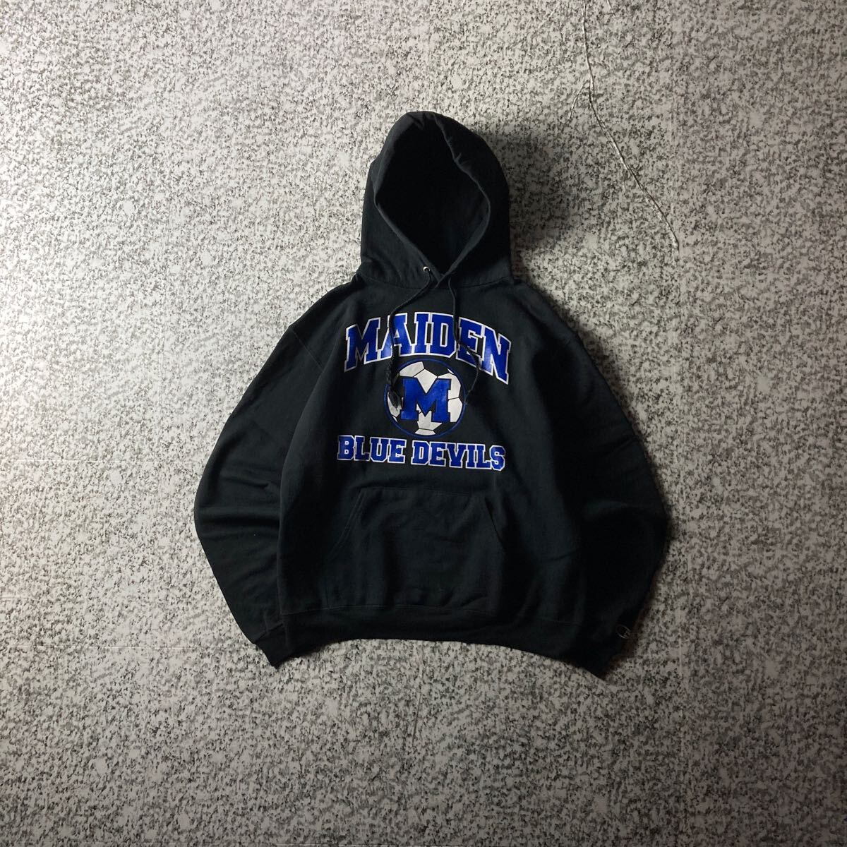 > 【00sオールド】チャンピオン チームロゴ プリントフーデッドスウェットシャツ ブラック Mサイズ 古着 パーカー フーディー