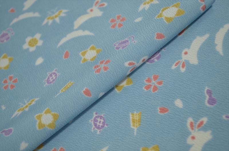 - ▲まいど家 X5-05-32 水色 ウサギ小花模様 半衿 化繊 未使用品