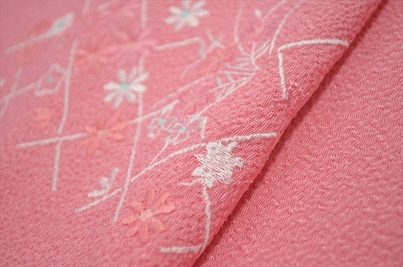 - ▲まいど家 X5-05-02 ピンク地 ちりめん 刺繍 洗える半衿 ポリエステル 未使用品