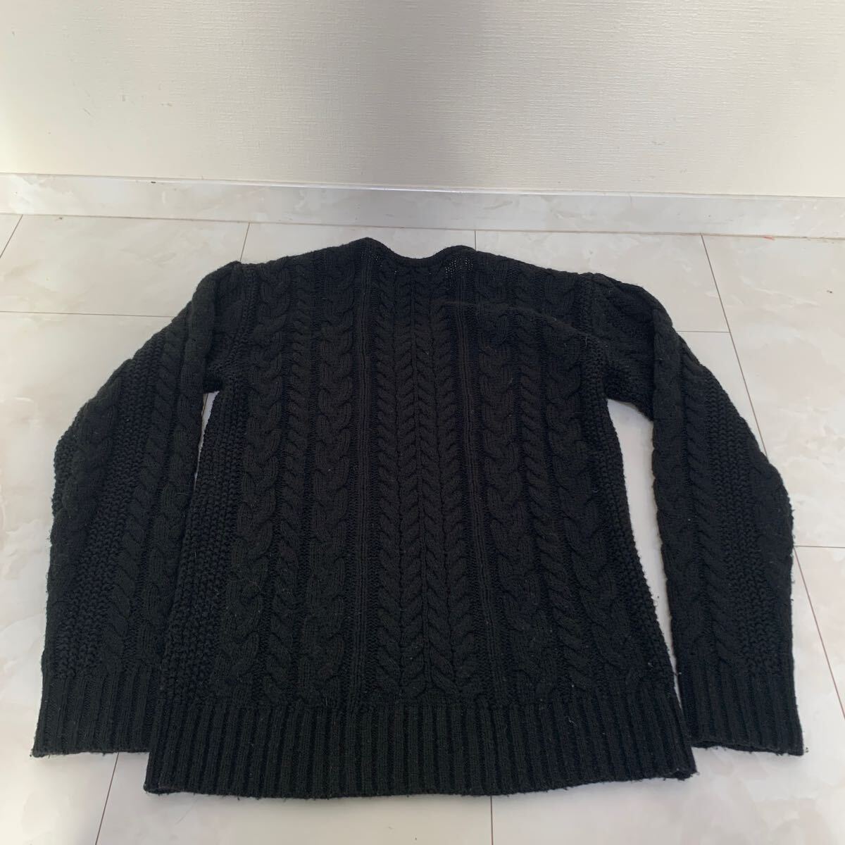 > 5GGアクリルフィッシャーマン総ケーブル編みVネックニット L SPU 着丈63胸囲94肩幅42袖丈 65腕ぐり45腕まわり36 アクリル85%ポリ15%