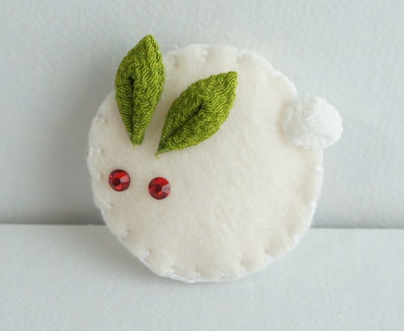 - ♪ ハンドメイド 雪うさぎ ブローチ フェルト つまみ細工 高分子結晶ストーン使用 綿入り