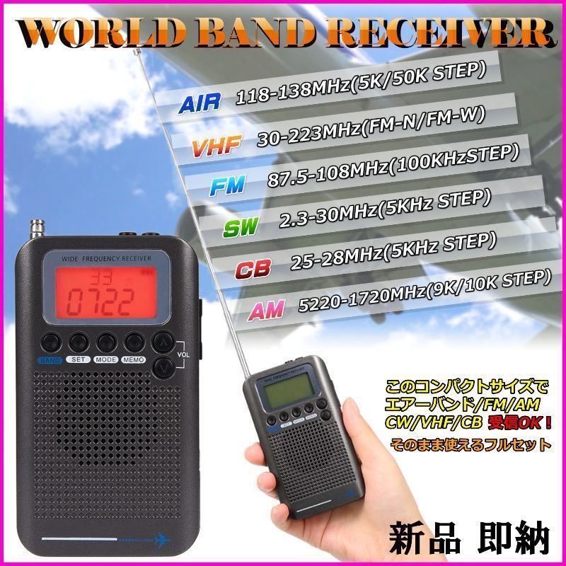 > VHF・エアーバンド・CB無線機・FM・AM・SW 一台!薄型 多機能 マルチ ハンディ 受信機 50ch メモリー可 スリーブタイマー等 新品/航空無線