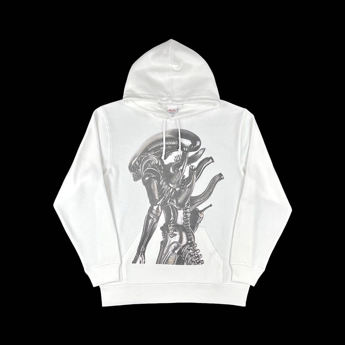 > 新品 ビッグプリント エイリアン HRギーガー クリーチャー 地球外生命体 リドリースコット SF ホラー 映画 パーカー オーバーサイズ XL(LL)