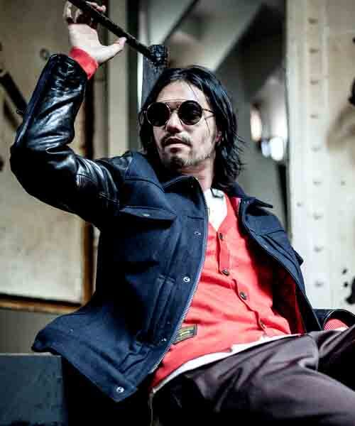 - ●美品 glamb グラム Melvin JKT スタジャン ウールジャケット レザースリーブ NVY サイズ1