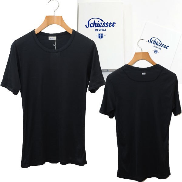 > 【新品 BOX 冊子付き】Schiesser シーサー 160107 1/2 HEINRICH コットン100% クルーネック Tシャツ ダークブルー ネイビー 6/L