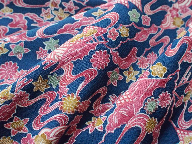 > 着物生地ハギレ☆小紋正絹ちりめん・33×162☆リメイク細工小物洋服作りに布手芸