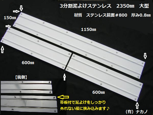 > トラック用 3分割 泥よけステンレス 2350㎜ 表裏でしっかり挟む 大型 タレゴム マットガード