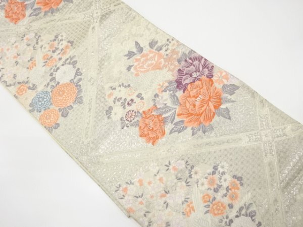 > ys7257120; 宗sou 天井柄に鳥・花模様織り出し袋帯(材料)【アンティーク】【着】