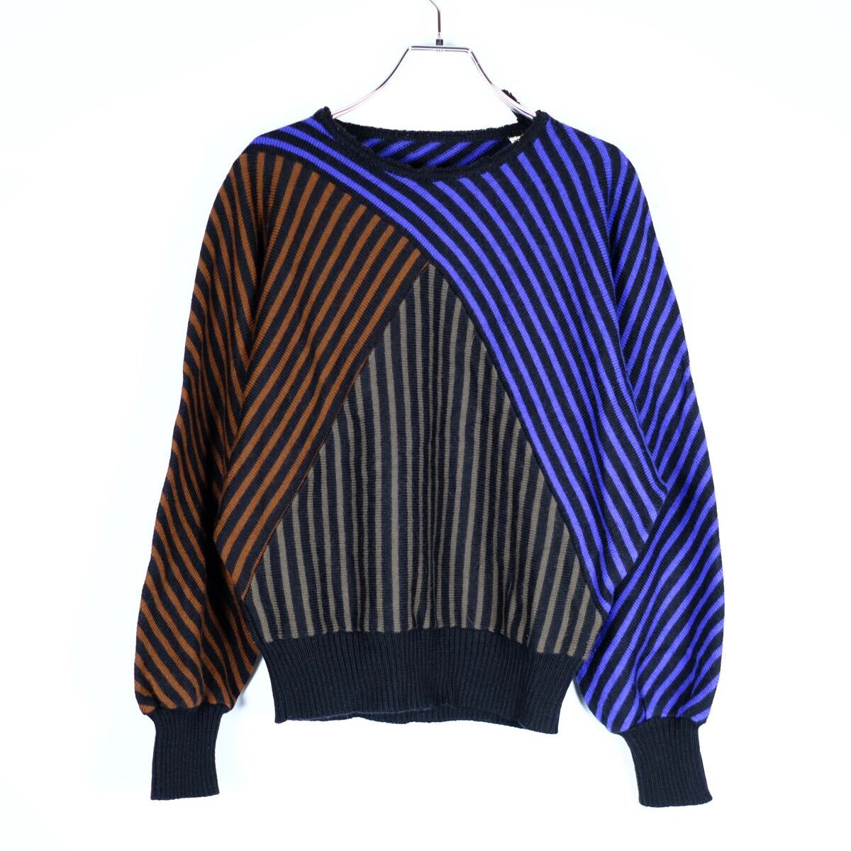 > 1970s イタリア製 ビンテージ デザイン ドルマンスリーブ ニットセーター カラフル アート ユーロ 古着屋 オーバーサイズ