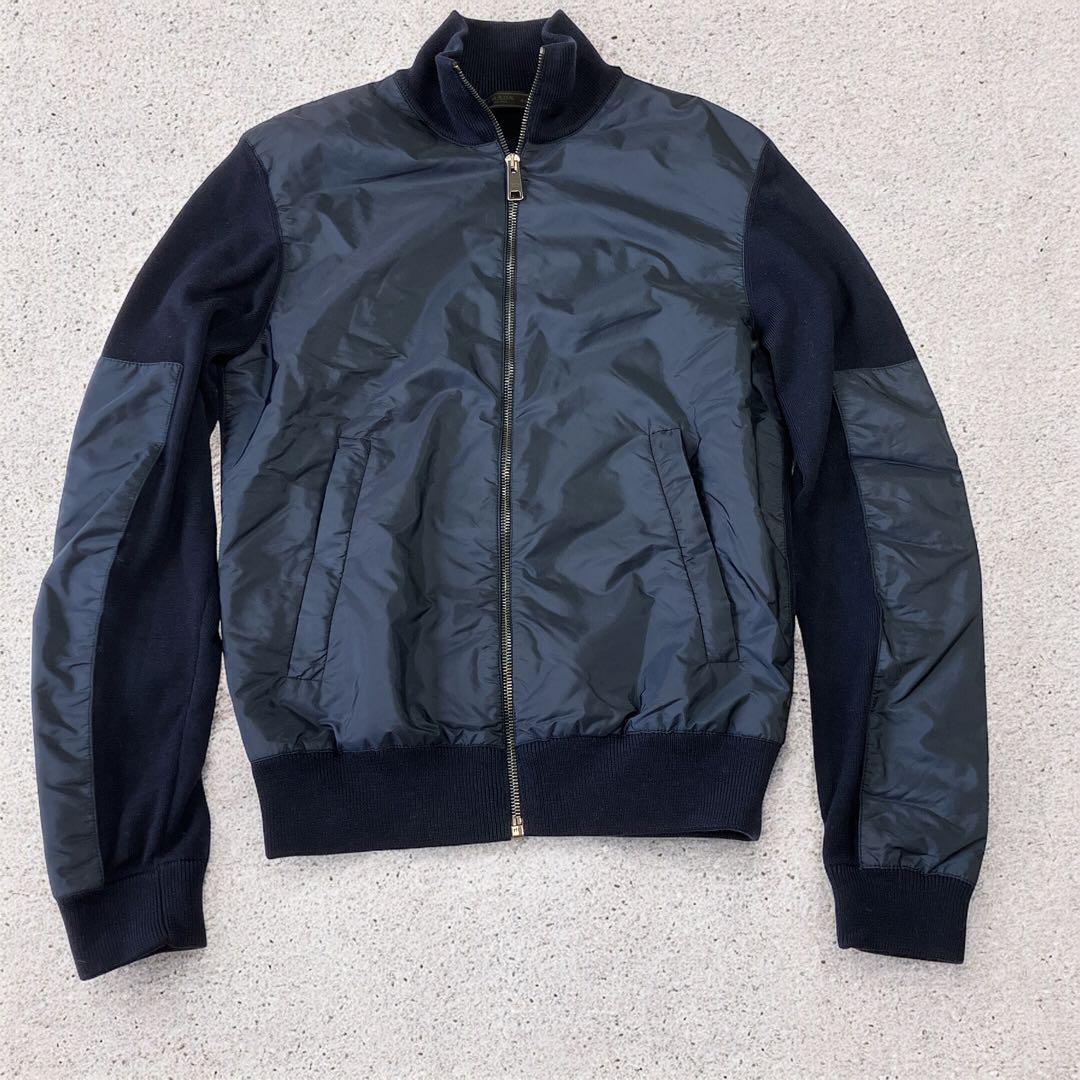 > PRADA プラダ ニットナイロン切り替え ブルゾン ナイロンジャケット ニット 44 XL ドライバーズニット /ジャケット ウール ネイビー