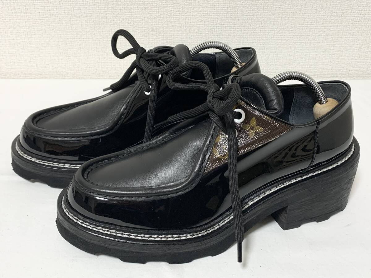 > 超美品 ルイヴィトン LOUISVUITTON モノグラム LVボブール ライン ダービー レザー エナメル ショート スニーカー ブーツ 厚底 シューズ 40