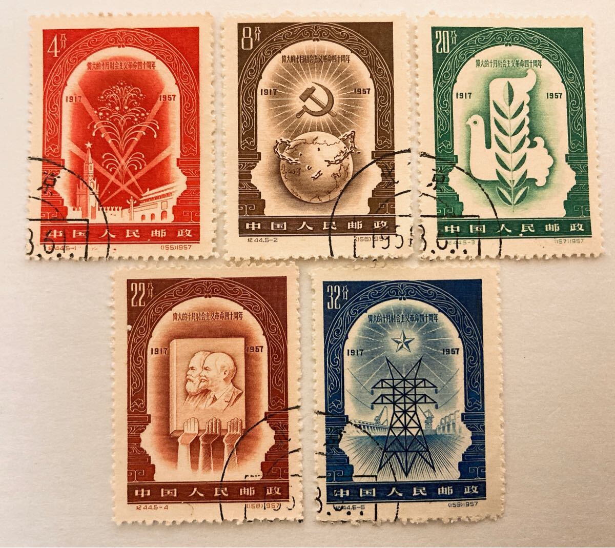- 中国切手 紀44 社会主義10月革命40周年 消印有り