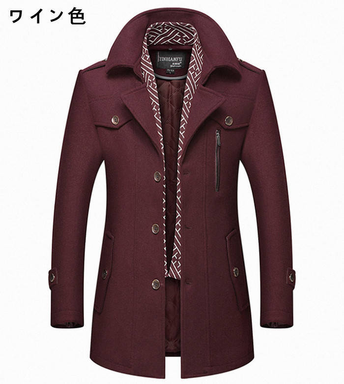 - ダッフルコート メンズコート ウール混 ミドル丈コート ビジネス ブレザー 厚手 テーラードコート Zty-1463-1 ワイン色 L/175