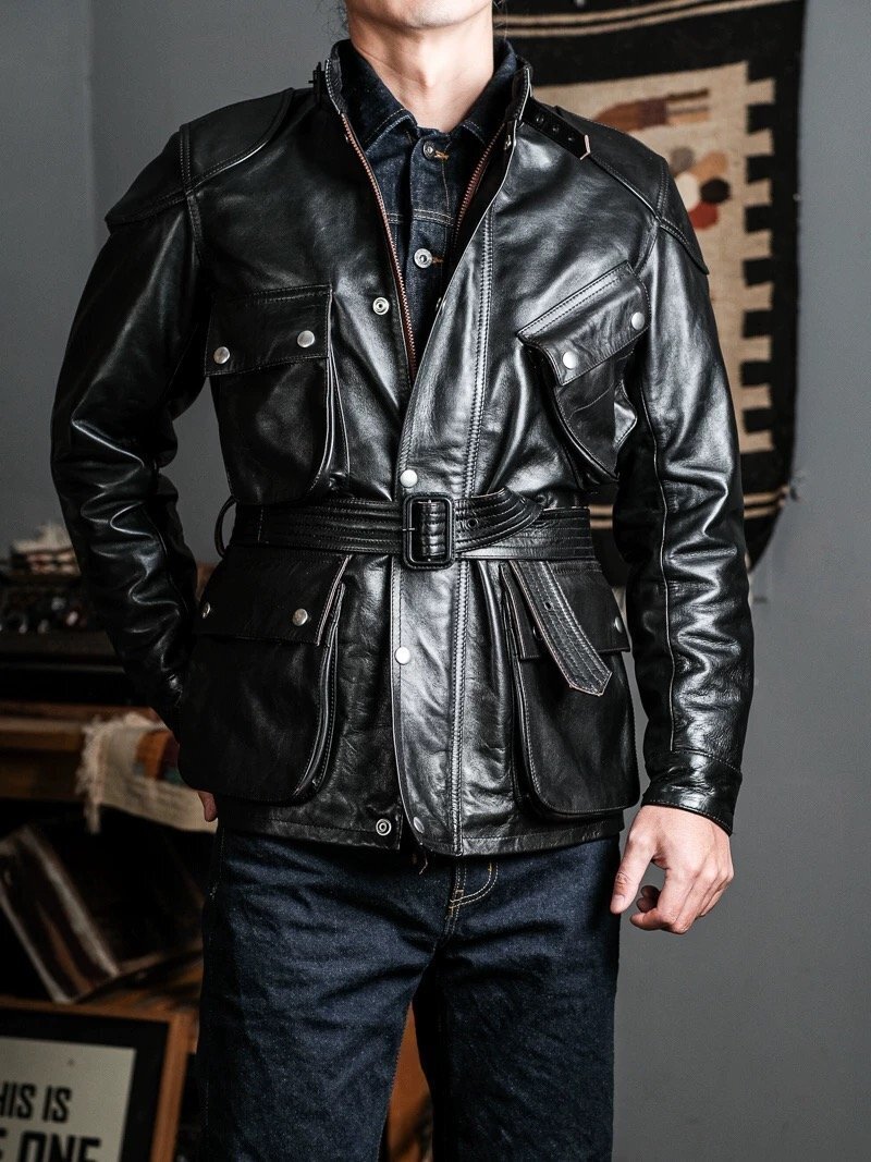 > 極美品★ ダブルライダースレザージャケット レザージャケットカーコート レザー 茶芯 馬革 S