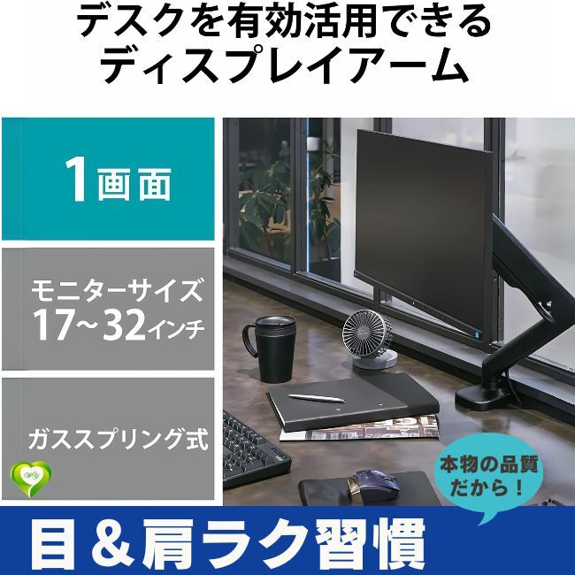 > 【目&肩ラク習慣】 シングルモニターアーム 2色展開 エレコム 17~32インチ対応 耐荷重:9kg VESA規格対応 快適 便利 頑丈