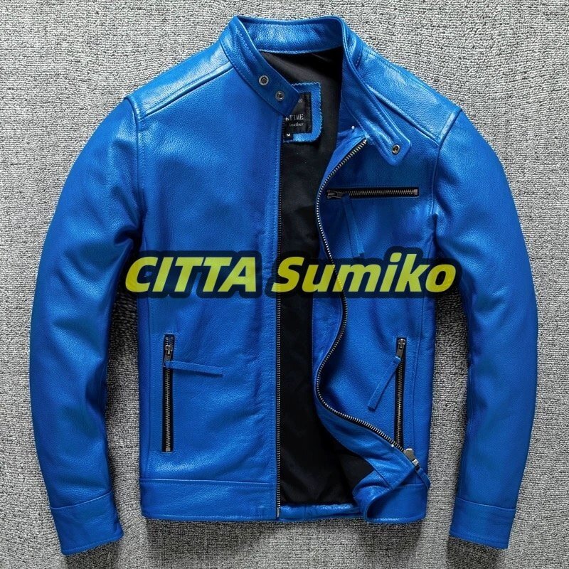 > 稀少品■スタンドカラーレザージャケット メンズ 革ジャン 最上級 牛革 ライダース バイクウエアオートバイ ブルゾン 本革 S~5XL