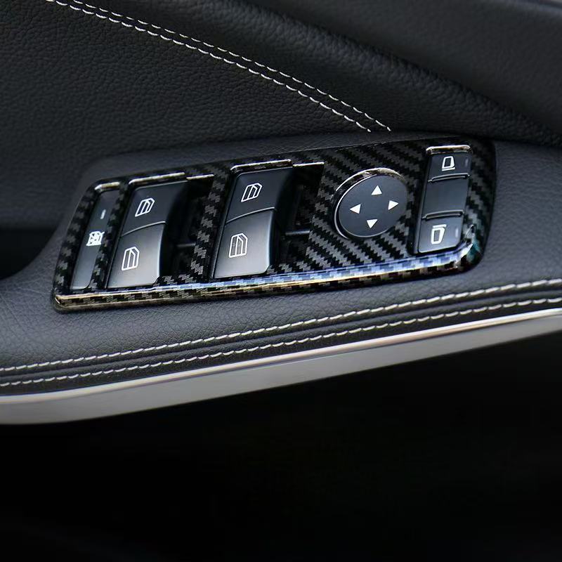 > スポーティ全開♪ メルセデス ベンツ カーボン ルック ウインドウスイッチ カバー W212 E220 E250 E300 E350 E400 E550 E63 Eクラス セダン