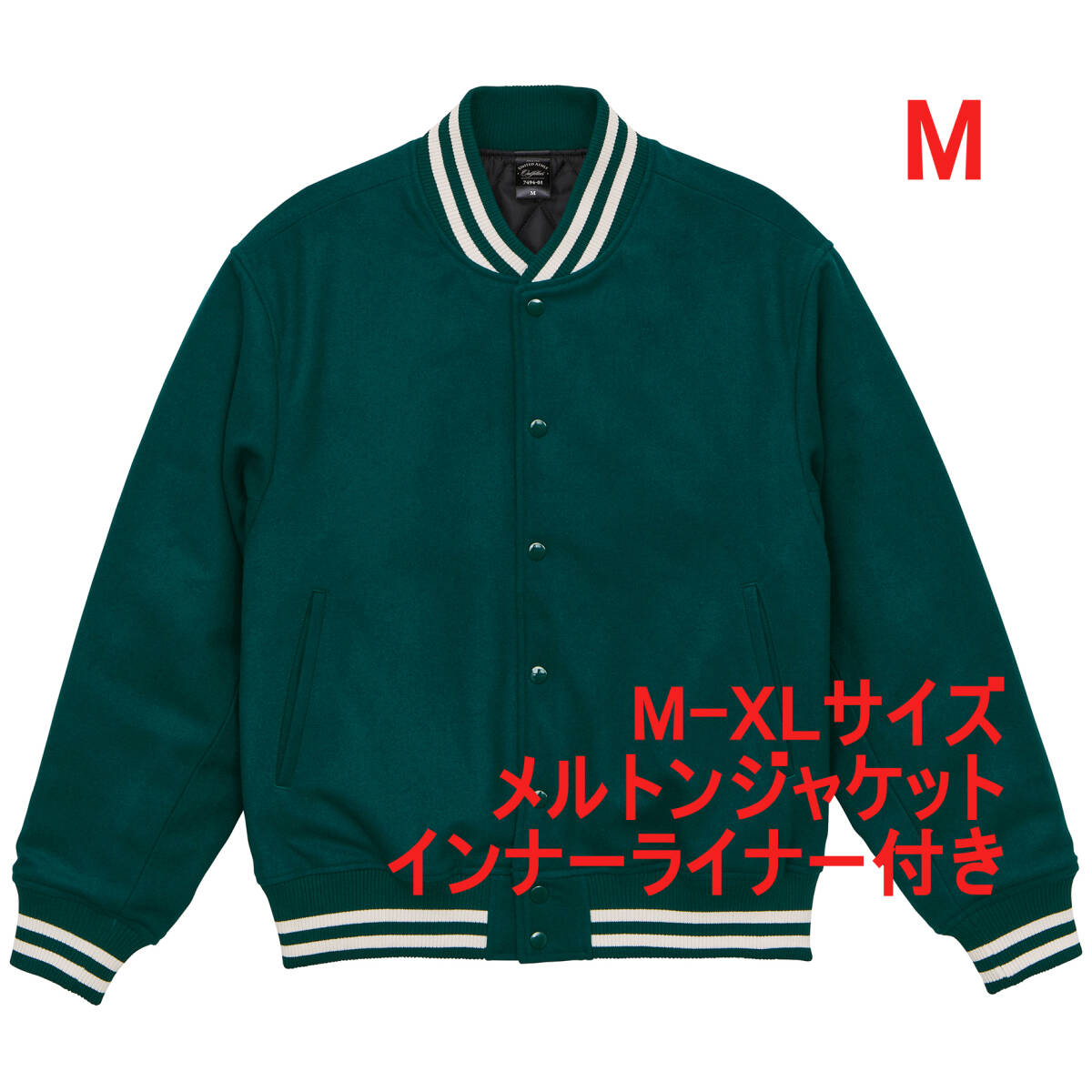 - 【訳有】749401 グリーン M メルトン スタジアム ジャケット 裏地キルティング 厚手 スタジャン メルトンジャケット ユナイテッドアスレ