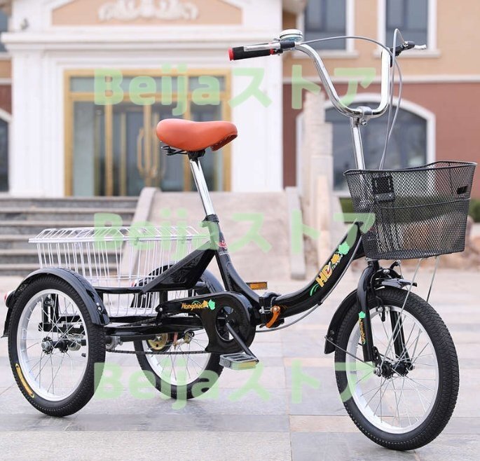 - 人気推薦☆大人用三輪車 大型バスケット付き リクリエーシ 高齢者用ペダル自転車 16インチホイール バスケット付き折りたたみ式三輪車 126