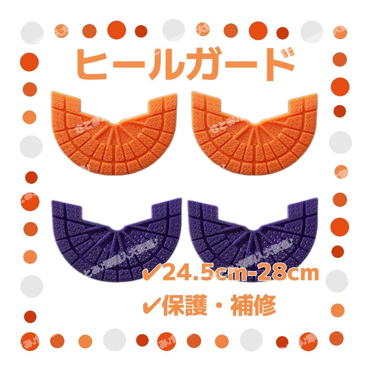 - ヒールガード 4枚セット 2足分 ソールガード スニーカー プロテクター 保護 補修 24.5cm-28cm オレンジ パープル