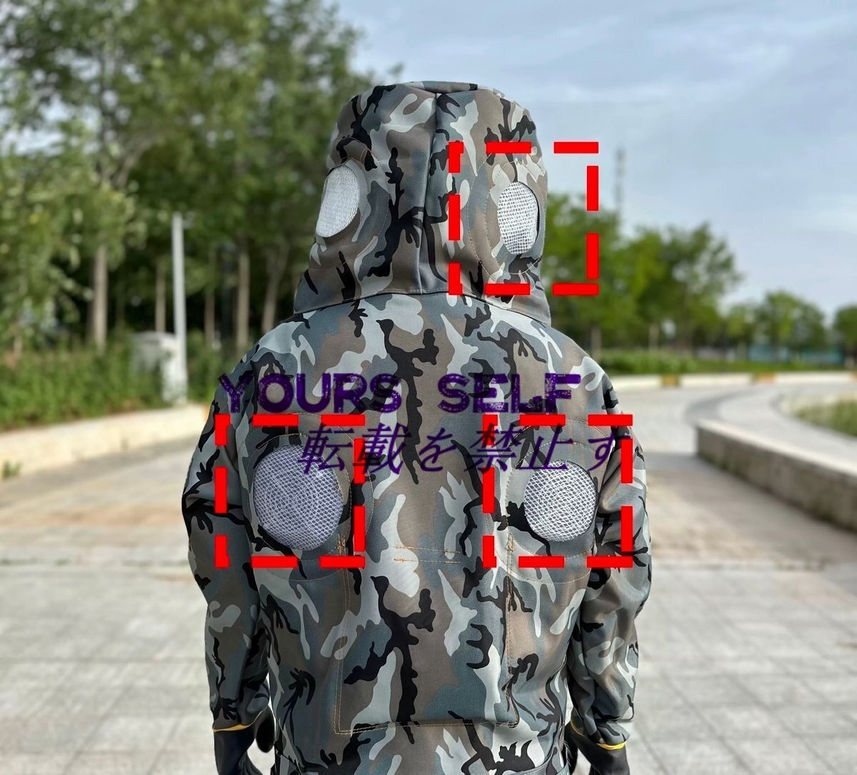 - スズメ蜂 万全防護服 害虫駆除 つなぎ服 スズメバチ駆除用蜂防護服 プロキット 3つファン付 短靴 木登りやすい通気性 迷彩タイプ