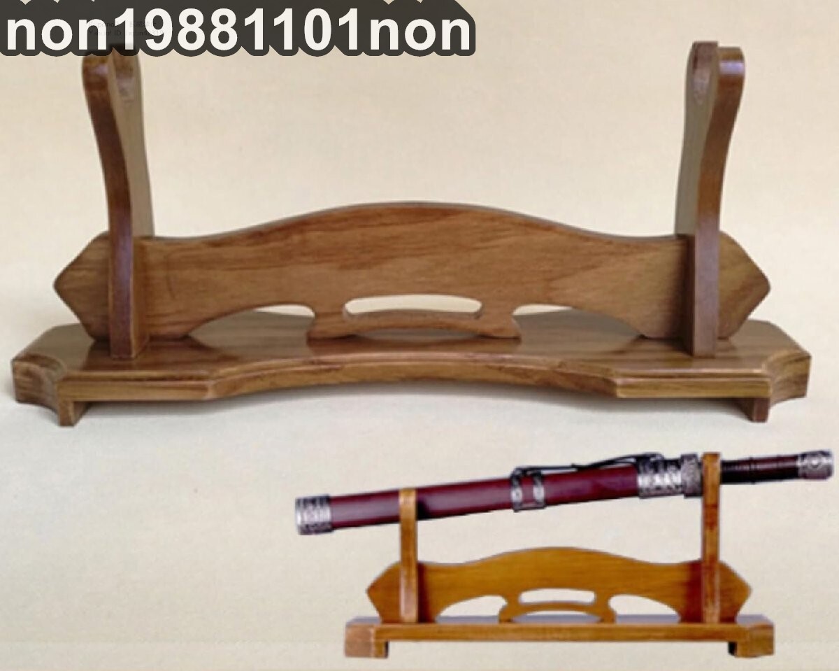- 刀掛台木製無垢材 台座付き 刀掛け 一段刀置き 日本刀 木刀 剣置き 短刀拵え 居合刀 一本掛け用