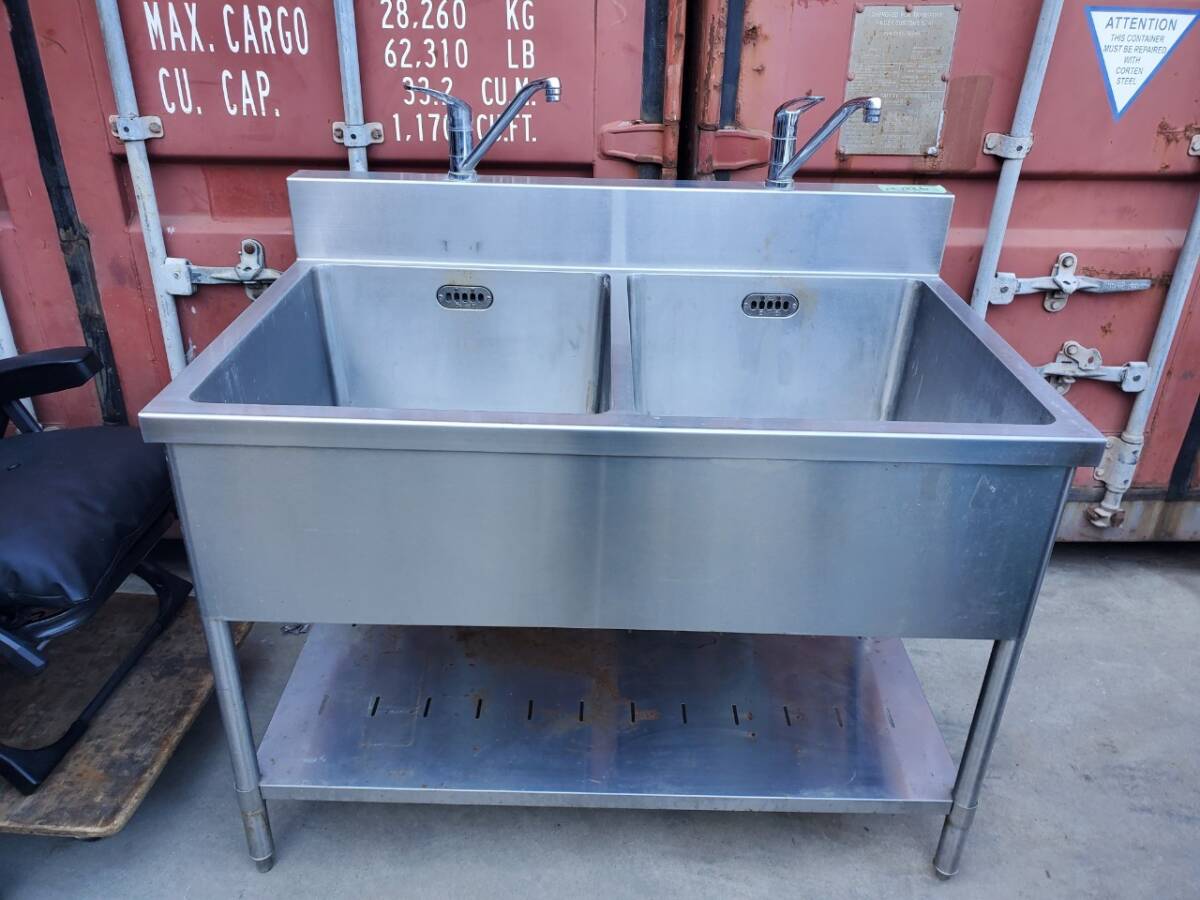 > M2996-5【綺麗に洗浄して発送致します】二槽シンク W1200×D750×H830+BG150㎜ 新品ホース付 2槽シンク/混合水栓/業務用/店舗/飲食店/厨房