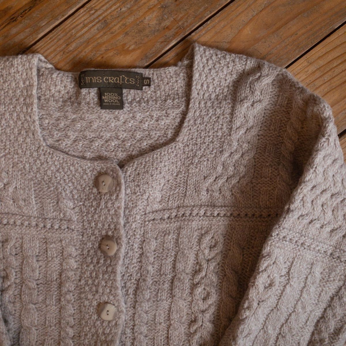 - USA古着 INIS CRAFTS イニス クラフツ フィッシャーマンニット レディース Sサイズ メリノウール カーディガン アイルランド製 S0912