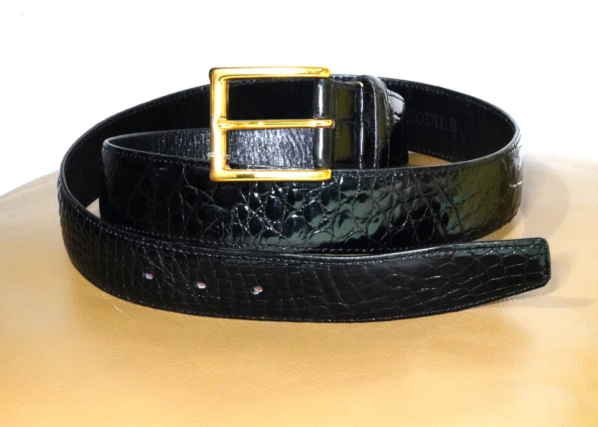 - 60000 リアルクロコダイル ブラック レザーベルト ワイド幅 3.5cm イタリア製 メンズ
