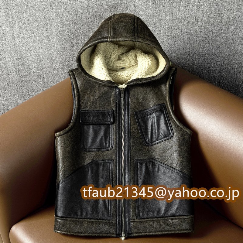 - 【ケーリーフショップ】ムートン コート 羊革 毛皮一体 フードつき 本革 防寒服 ラムレザー 天然革 ベストコート S~5XL