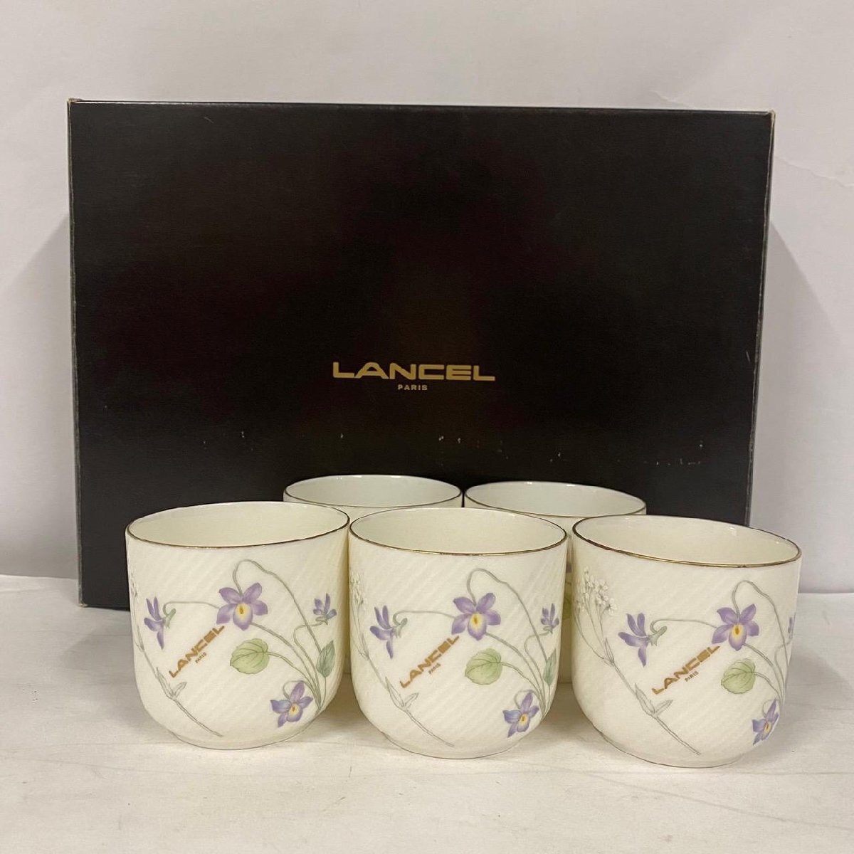 - 【保管品】LANCEL ランセル 湯呑 5客セット キッチン用品 花柄 桔梗 テーブルウエア