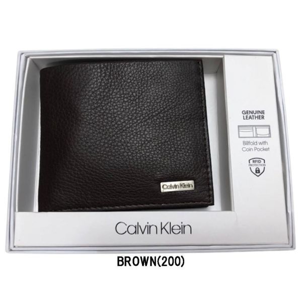 > ※訳あり アウトレット Calvin Klein(カルバンクライン)ck 二つ折財布 小銭入れ付 本革 小物 メンズ 31CK130015 BROWN(200)