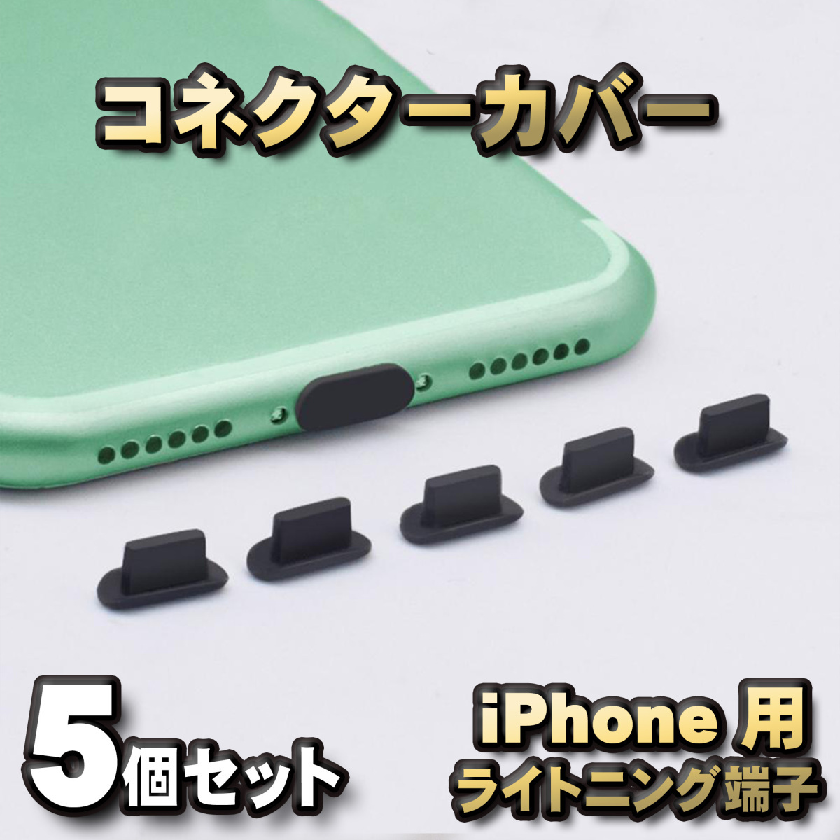- iPhone対応 ライトニング端子用 コネクター カバー 端子カバー 保護 カバーキャップ カラー ブラック 5個セット