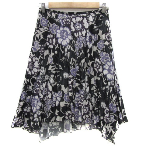 > インディヴィ INDIVI プリーツスカート ミモレ丈 花柄 40 L マルチカラー 黒 ブラック /YS19 レディース