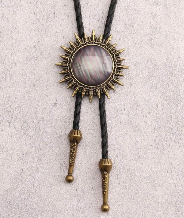 - 【ループタイ】太陽アンティークゴールド×グレー ペンダント ブロンズ
