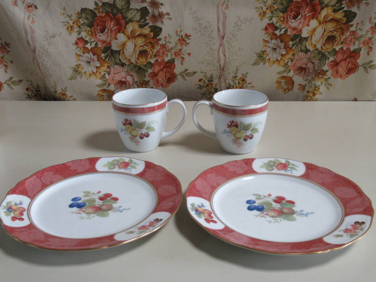 > R7 01★ノリタケ【FRUIT MONIGRAM】モーニングペアセット マグカップ2客&ソーサー2枚 未使用