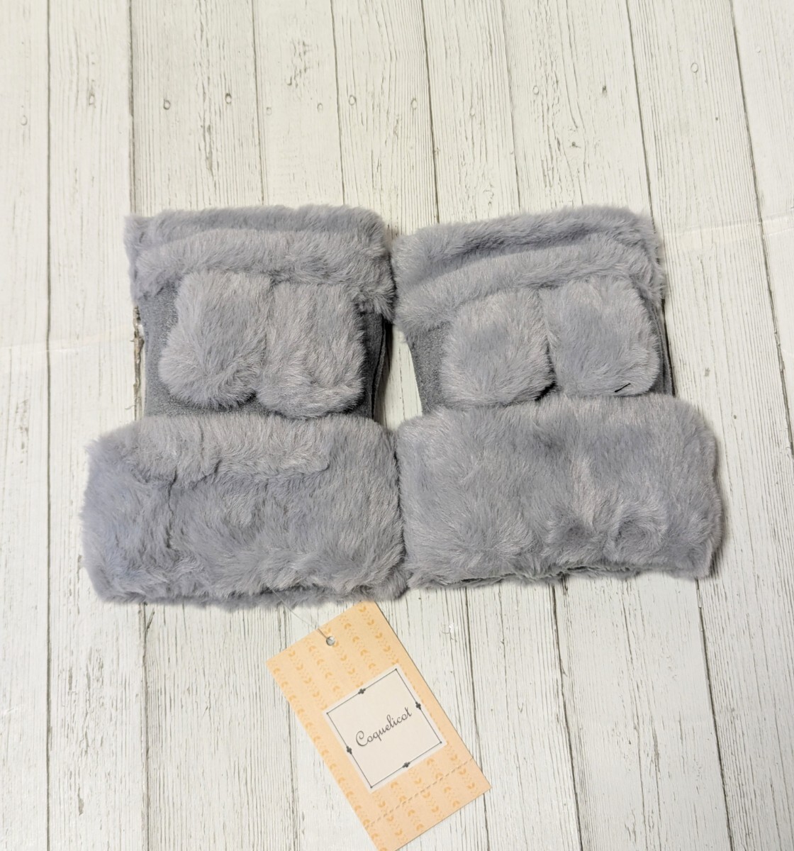 - レディース ミトン 手袋 フィンガーレス グレー 裏起毛 スマホ