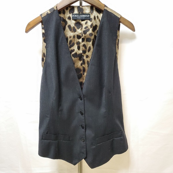 > #anc ドルチェ&ガッバーナ DOLCE&GABBANA ベスト・ジレ 38 黒 茶系 ヒョウ柄 イタリア製 レディース [923736]