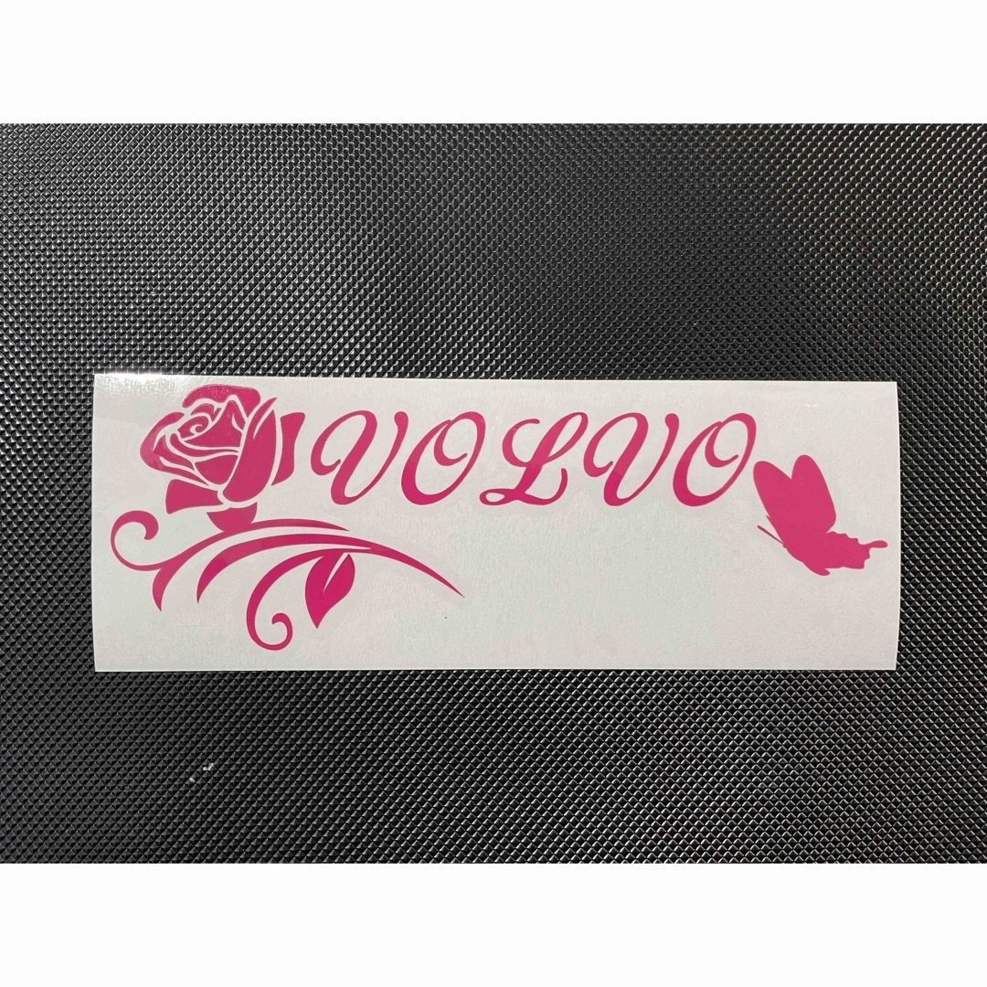 - ボルボ Volvo 薔薇 蝶 カッティングステッカー 転写シール ピンク