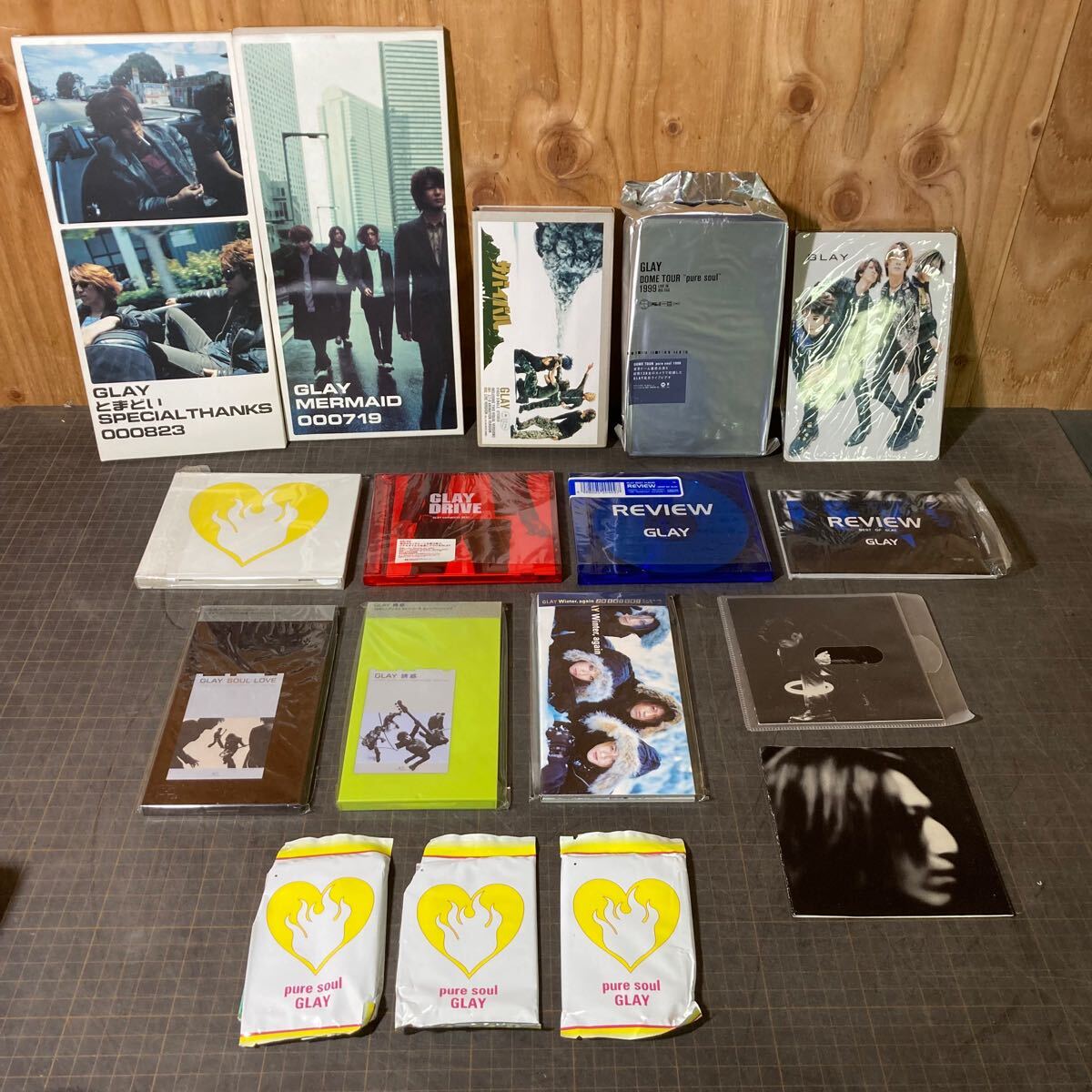 - 【14955P179】GLAY CD VHS ビデオテープ まとめ カード 下敷き 付き pure soul DRIVE REVIEW Winter, again SOUL LOVE 誘惑 ライブ