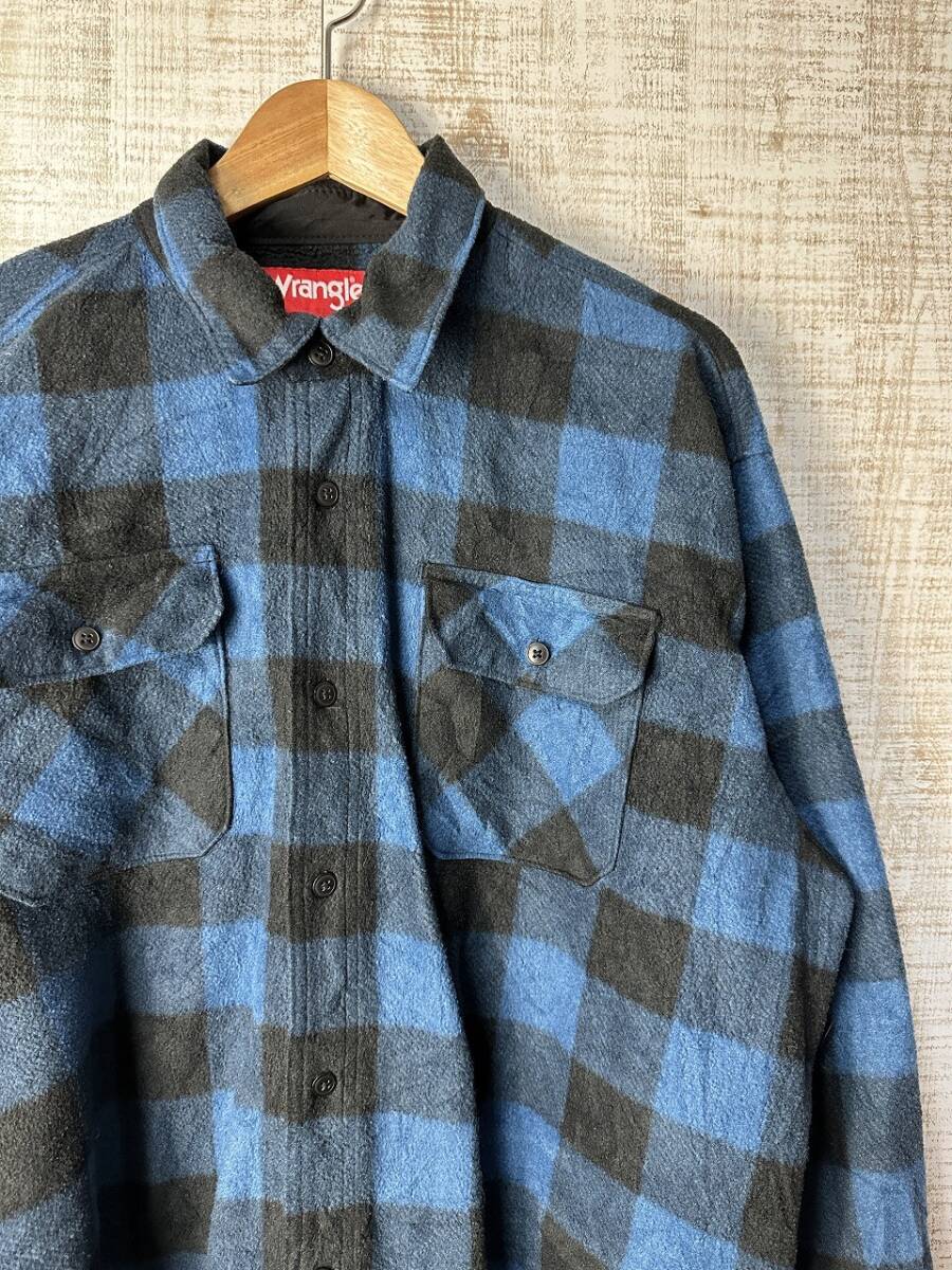 - ☆ビッグ US古着 Wrangler ラングラー フリースシャツ チェック柄 ブロックチェック ブルー青ネイビー紺×ブラック黒【XL】ポリ ◆4854◆