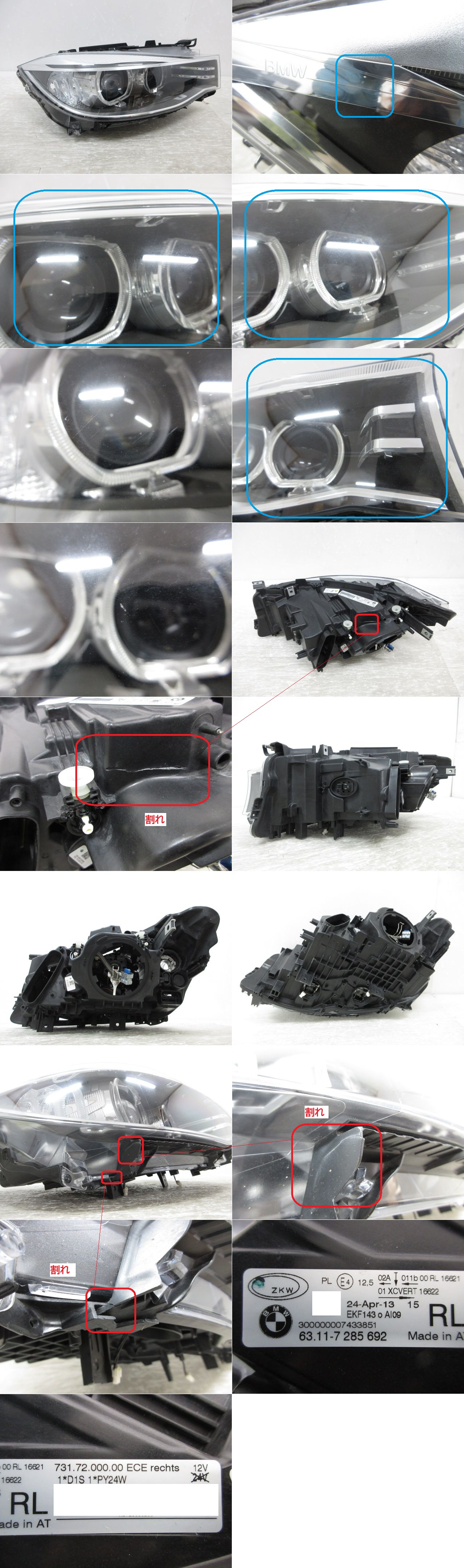 - 【即決有】 ジャンク BMW 3シリーズ F34 純正 右 ヘッド ライト HID 63.11-7 285 692 63.11-7285692 (B042321)