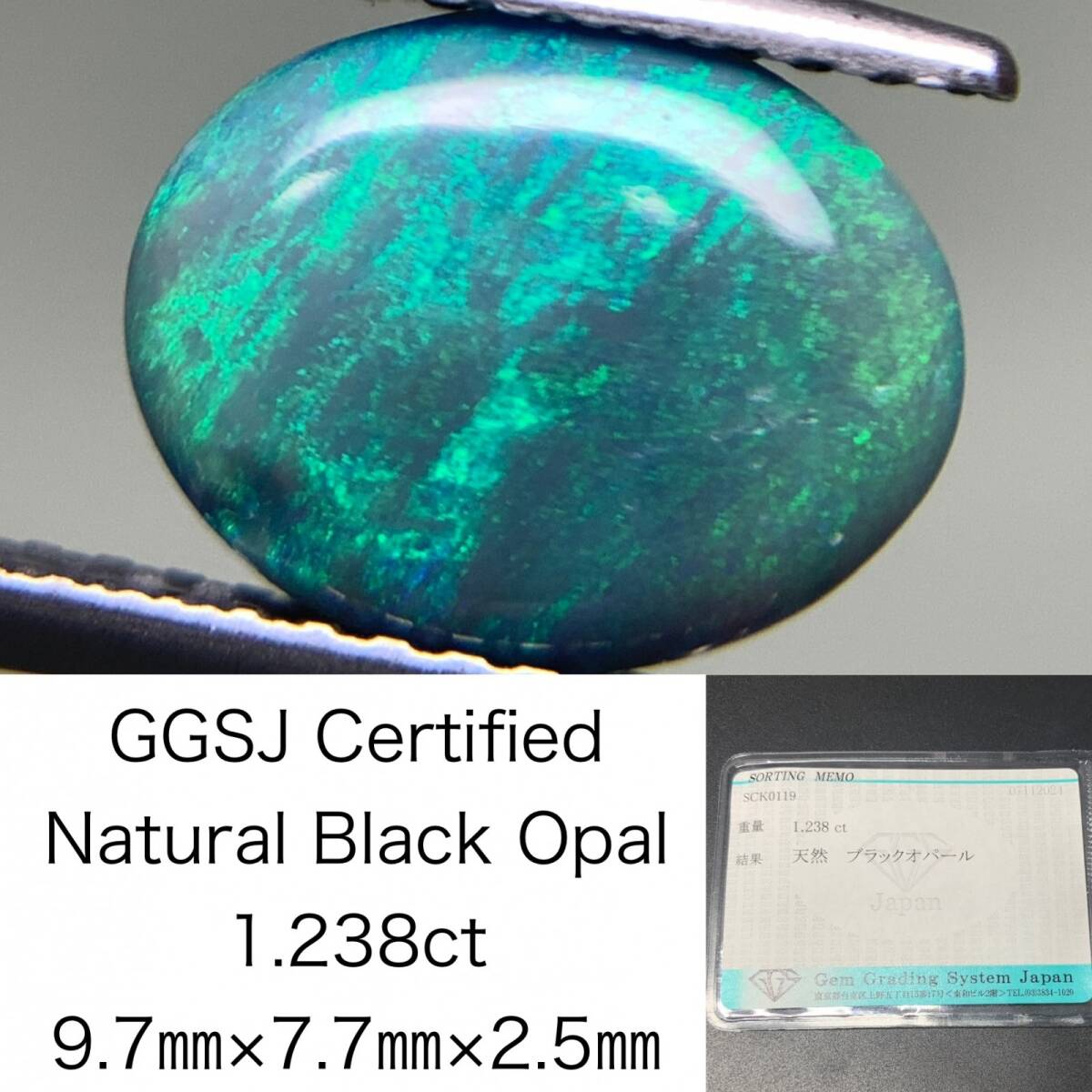 > ブラックオパール 1.238ct 宝石ソーティング付き 9.7×7.7×2.5 ルース( 裸石 ) 3130Y