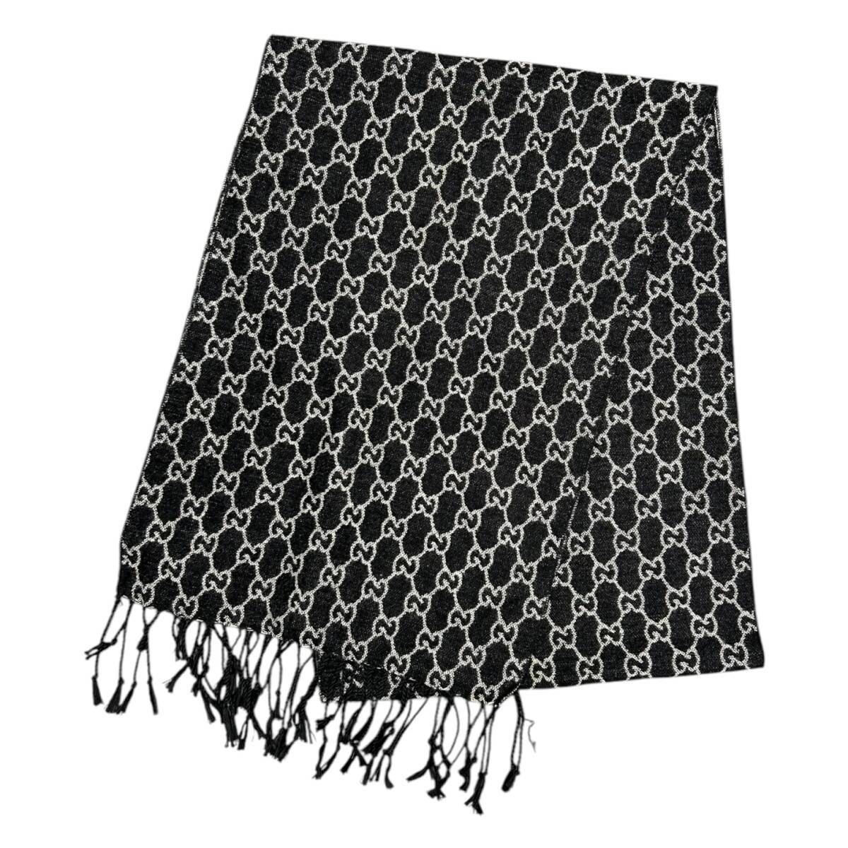 - ストール マフラー ブラック レディース GG柄 ブラック系 グレー系 薄手ストール ニット【中古】