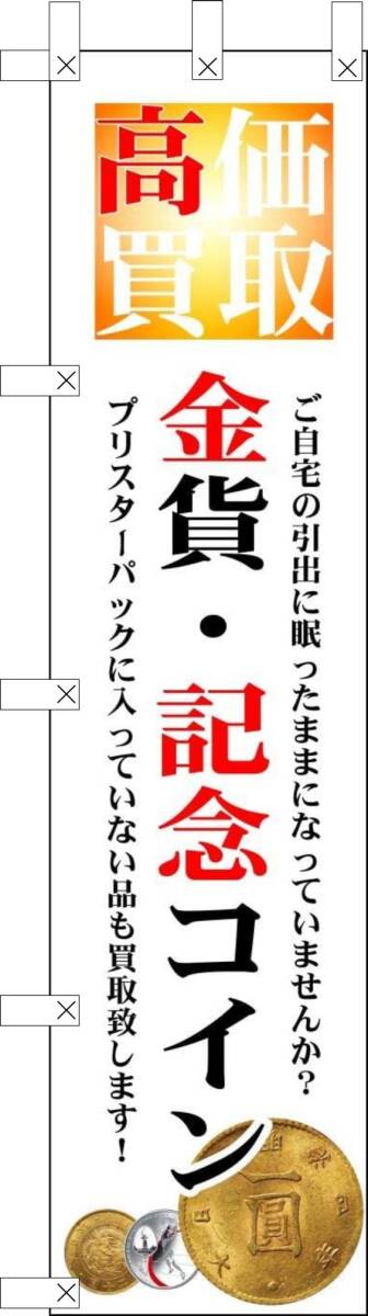 - のぼり旗「高価買取 のぼり 金貨 のぼり 記念コイン 硬貨 金 ブランド 幟旗 買取強化中 のぼり リサイクル リユース 白」何枚でも送料360円