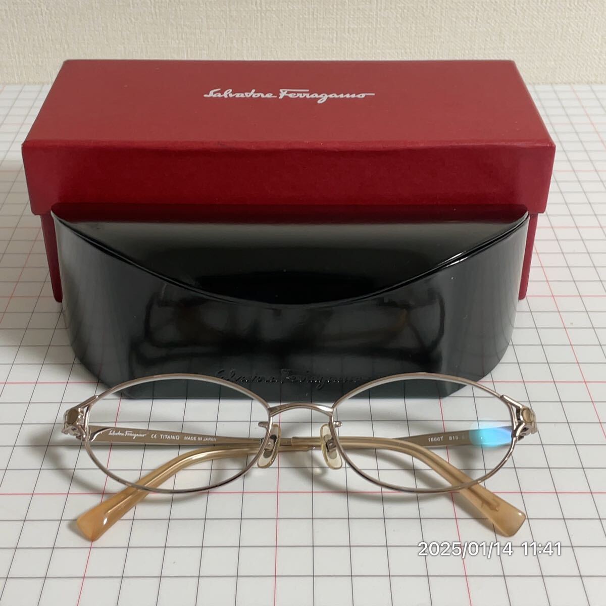 > 美品 Ferragamo サルヴァトーレフェラガモ ブランドロゴ フルリム オーバル メガネ 眼鏡 ケース 箱付き
