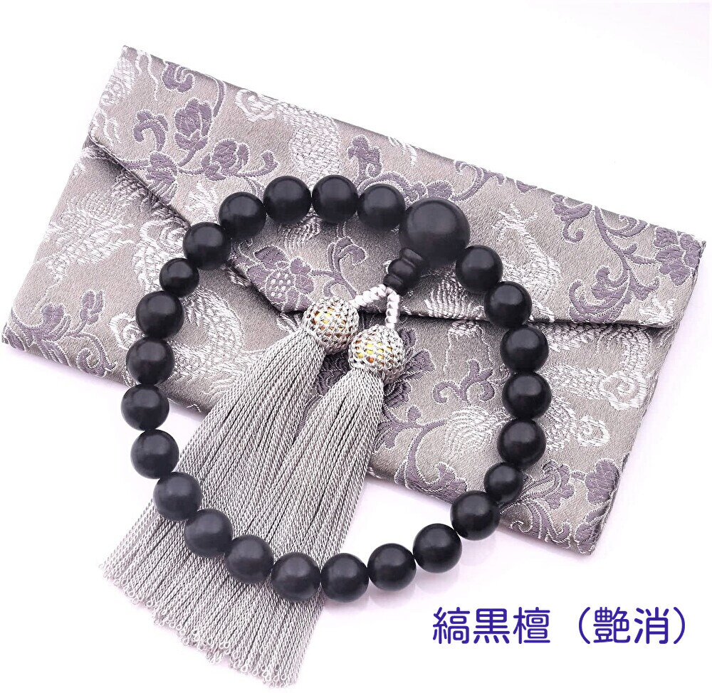 - 男性用 数珠 縞黒檀(艶消) マグネット式数珠袋付 略式数珠 念珠