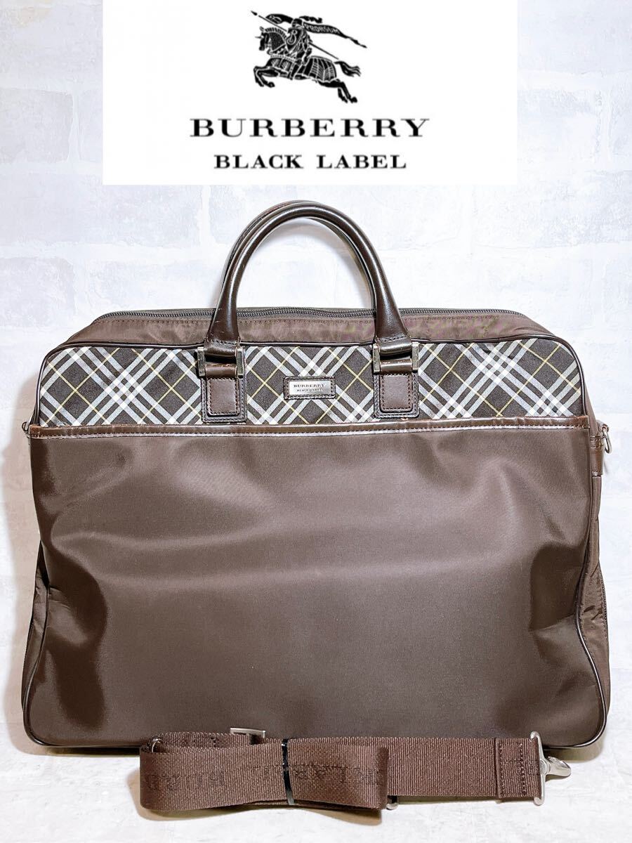 - 【美品】BURBERRY BLACK LABEL 2way ビジネスバッグ 茶 ブリーフケース ショルダーベルト付き