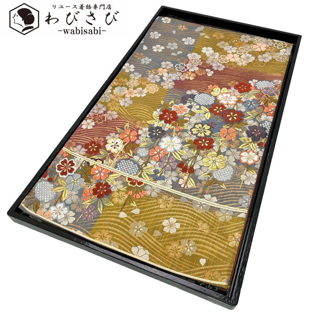 - 袋帯 桜吹雪 唐織 美しい桜柄 波模様 金糸 O-4555 着物 きもの kimono 和服 和装 中古 リサイクル着物 【送料無料】