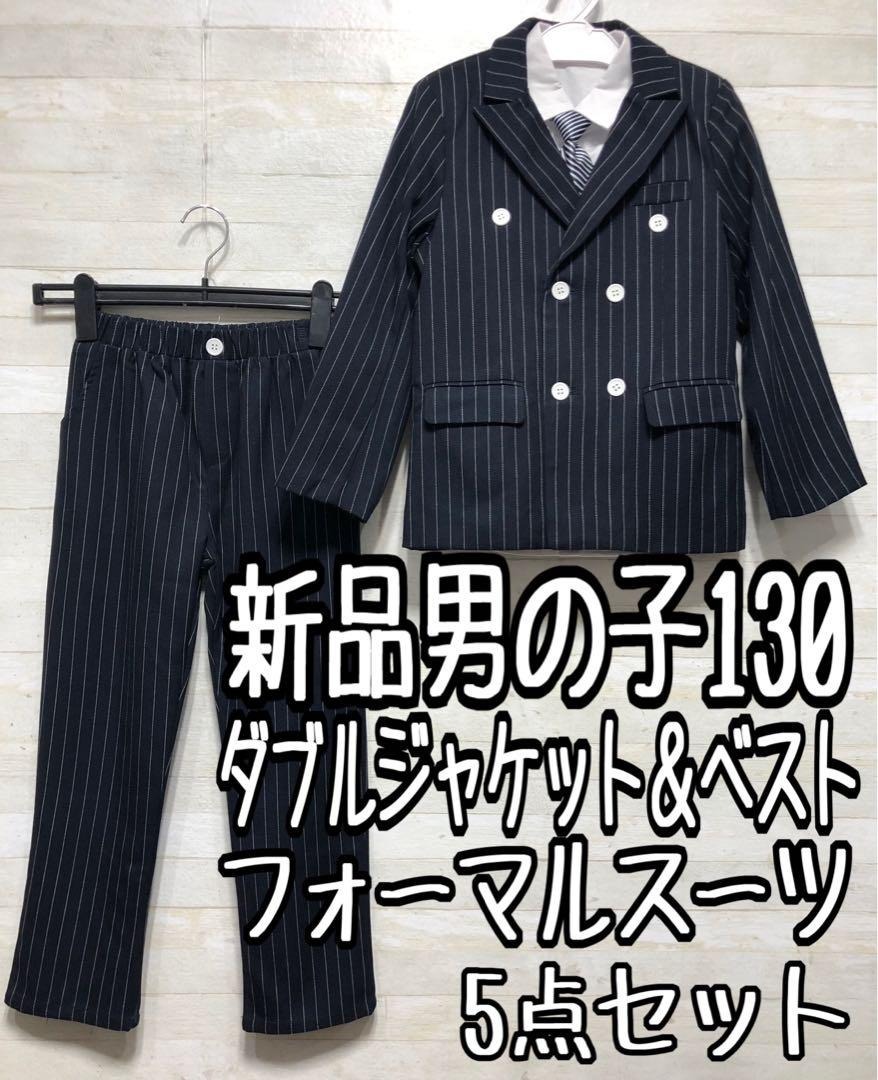 - 新品☆男の子130紺系ストライプ♪ダブルのスーツ5点♪入学式フォーマル◯B997